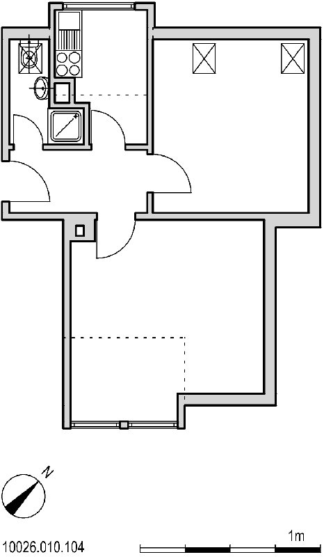 Die Wohnung besteht aus einem Flur, Küche (ohne EBK), Bad und 2 Zimmern. Zur Wohnung gehört ein Kellerraum im UG.
