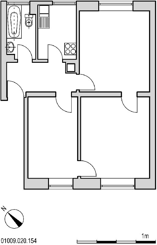 Die Wohnung besteht aus 3 Zimmern, Flur, Küche (ohne EBK), Bad mit Badewanne.