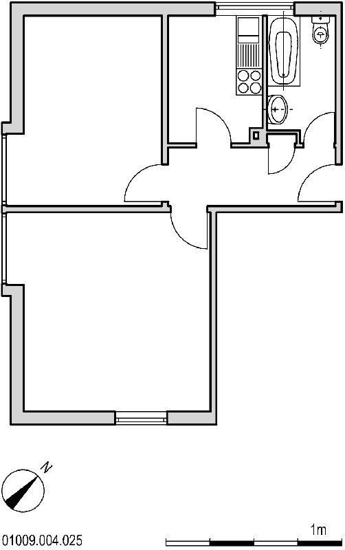 Die Wohnung besteht aus 2 Zimmern, Flur, Küche (ohne EBK), Bad.